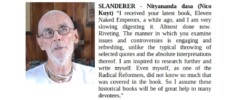 The only difference between the two books is that Killing For Krishna lacks any of the subtleness of ISKCON’s biography. Doktorski’s slander of Sulocana is totally gross and in your face, unlike Satsvarupa’s slander of Prabhupada which has a more covert nature. The amazing thing is that so many “devotees” claiming to be Prabhupada followers praise this offensive book that slanders Sulocana on page after page!” (Mukunda dasa – Killing For Keith Chapter One)